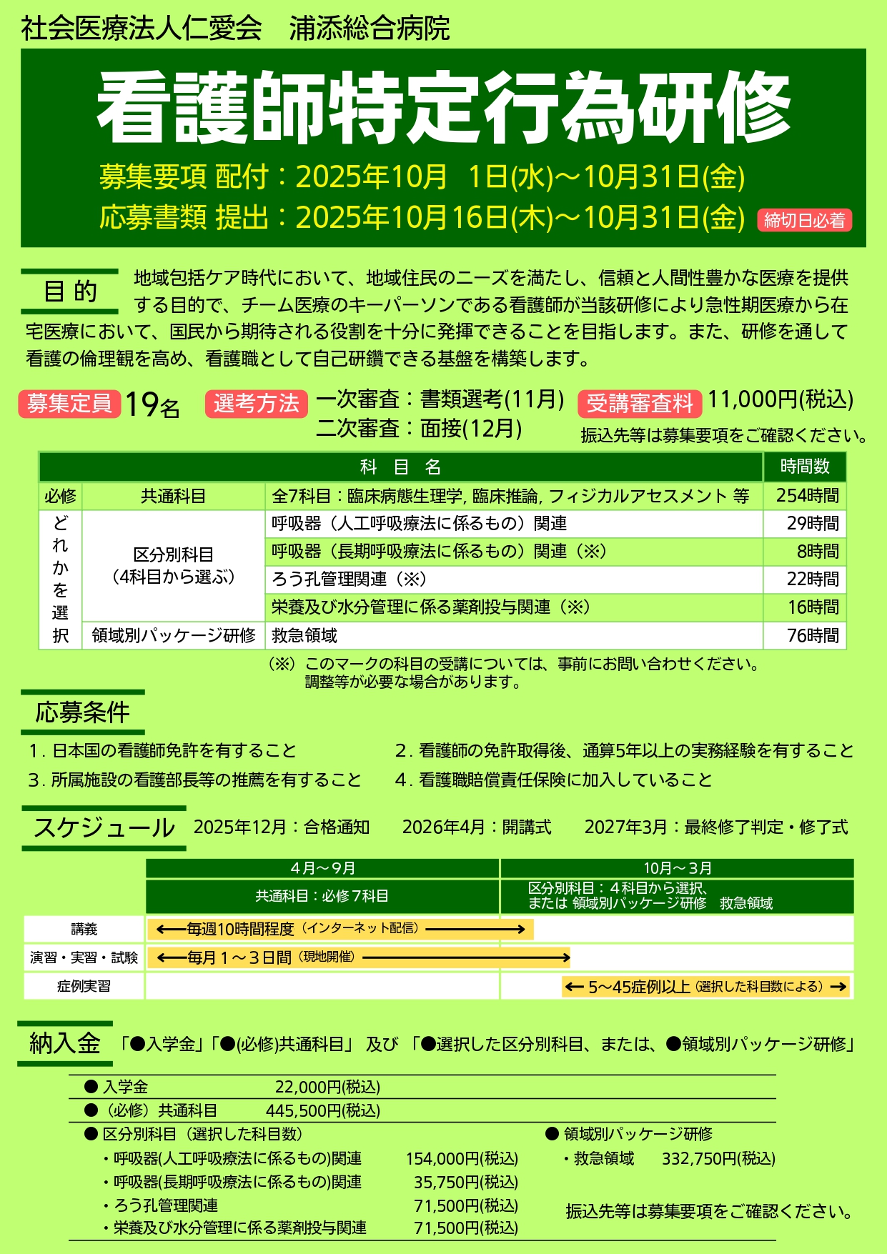 特定行為研修とは、看護師が手順書により特定行為を行う場合に、特に必要とされる実践的な理解力、思考力及び判断力並びに高度かつ専門的な知識及び技能の習得を図るための研修です。